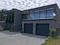 Et flot lavenergihus der i materialevalg og farver er flot tilpasset naturen omkring huset