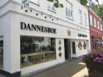 Forretningsfacaden og skiltning fremstår meget eksklusiv – i smukt samspil med forretningens vareudvalg.