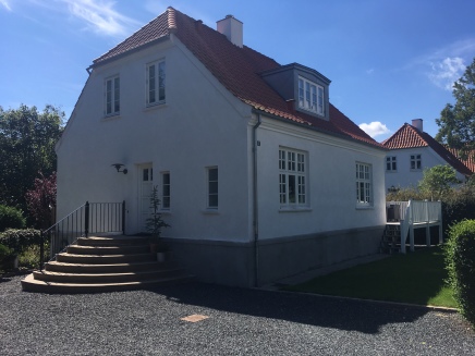 Den charmerende facade er forsynet med et lille halvtag udført i stål og glas placeret over hovedindgangen.