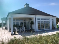 Det elegante hus på Strandvej 104 er af hensyn til blandt andet terræn og udsigten mod Kattegat sammensat af flere bygningskroppe med varieret højde og drøjde.Samspillet med klitterne giver huset karakter af, at det ligesom ”vokser” ud af terrænet med en spændende fremtoning, som gør det helt forskelligt fra de mere gængse rektangulære 1-plans huse. Det er et både iøjnefaldende og spændende byggeri, som er tildelt et diplom.
